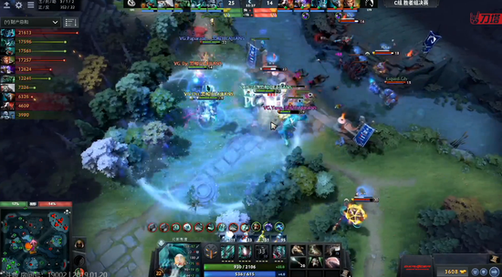 紧接着9分半大圣和墨客配合失误,VG再拿两个人头;10分钟Liquid下路圣坛处,VG再用一个海民换掉对面三人,VG优势非常大了。