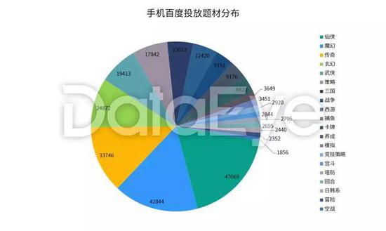 从具体的游戏类型来看,投放力度TOP100榜单中有14款传奇类产品、14款仙侠类产品、6款西游类产品、15款魔幻类产品、6款武侠类产品、8款策略类产品。
