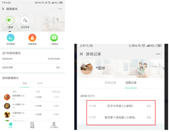 查询:家长可在成长守护平台中查询未成年人玩微信小游戏的时长和消费数据。