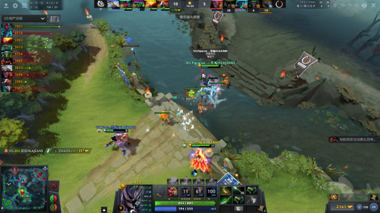 决胜局VG拿出帕克幻刺对抗Chaos影魔维萨吉双核。开局VG依然打出线优,paparuazi无解肥PA。急于打开局面的Chaos在9分钟试图冲下路一塔强杀Yang神,VG队友赶到轻松化解这波攻势,继续扩大领先优势。然而又是这种局面,VG肉山团leile。围绕肉山来回拉扯几波后,PA过于深入被影魔大招带走,残血肉山被Chao是收掉,帕克抢盾失败阵亡,拉比克OB致死。