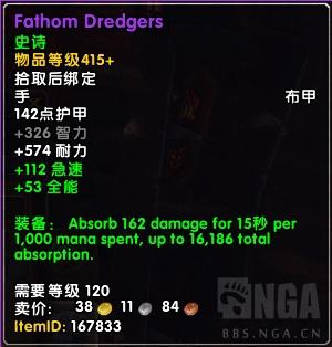 装备:每消耗1000法力值,吸收162伤害,持续15秒,最多叠加16186的吸收量。
