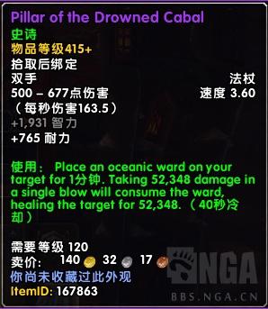 使用:为目标放置一个海洋守卫持续1分钟。单次超过52348伤害的攻击会消耗守卫,并为目标恢复52348点血。(40秒冷却)