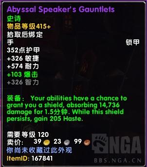 装备:血量跌到25%以下会立即恢复46241生命值。之后十秒会受到46241暗影伤害。这个效果每3分钟只能触发一次。