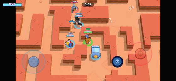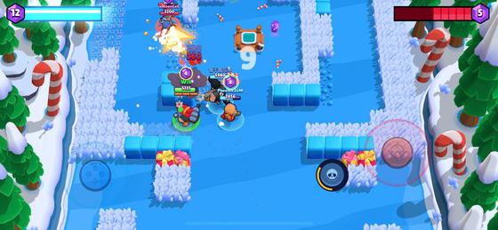 《荒野乱斗》就不存在这些问题,因为它生来就是为移动设备而研发的,并充分了解智能机平台的种种限制。该游戏的一局比赛通常只需要5分钟,俯视视角意味着玩家们不用担心视角问题。一个虚拟摇杆控制角色移动,另外一侧则是瞄准和武器攻击键,你还可以用屏幕右侧的按键单独攻击。一旦大招蓄满能量,另外一个虚拟按钮则被激活,用于瞄准和释放大招。草丛设定、宝箱刷新以及技能释放范围还给了玩家秀走位的空间,提高了游戏的竞技性和趣味性。