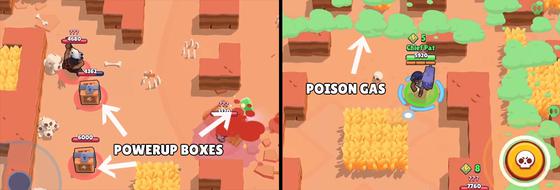 除了3V3对战之外,《荒野乱斗》还加入了10人战术竞技模式“荒野生死斗”,而且提供了单排和双排选项,玩法规则也很明确,总计5分钟的时间里,你在游戏里生存至最后一人即可获胜。和传统战术竞技模式不同的是,游戏里的资源是分布在地图里的各种增值道具宝箱,比如治疗和攻击力增强等等。虽然地图较小,但该模式仍加入了毒圈设定,站在圈外会持续掉HP,最终迫使幸存者在决斗圈遭遇。