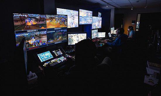 暴雪竞技场的直播设施派上了用场,赛场后台配备了了两个控制室、两个音响室、以及一个观察室。