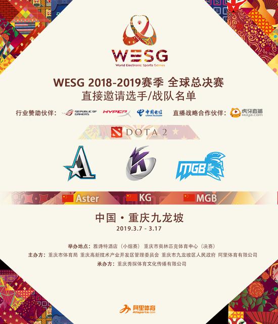 倒计时12天,WESG2018-2019赛季全球总决赛即将在重庆九龙坡开战,今日DOTA2剩余的两支直邀战队也由官方公布,分别是刚拿下下一个MAJOR名额的中国战队Keen Gaming以及由传奇中单430领衔的中国战队MGB,而早些公布的直邀战队VG由于档期冲突,由另一支中国新生战队Room310作为顶替。
