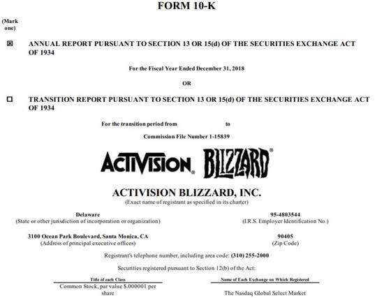 近日暴雪娱乐的母公司动视暴雪发布了其年度SEC文件,对于那些对财务和投资毫无兴趣的人来说,这份相当复杂充斥着财务信息的306页报告,阅读起来可能是相当沉闷而无聊的。但这份年度报告可以为把控公司的未来走向提供一个更长远的视角。这份年度文件并不是什么新鲜的东西,动视暴雪自1995年以来每年都会发布一份,里面都是美国政府要求披露的信息,包括公司业务和财务状况的全面概述,以便相关人士清晰地了解公司的历史,进展和对未来的预估,目的是减少股票操纵和欺诈。