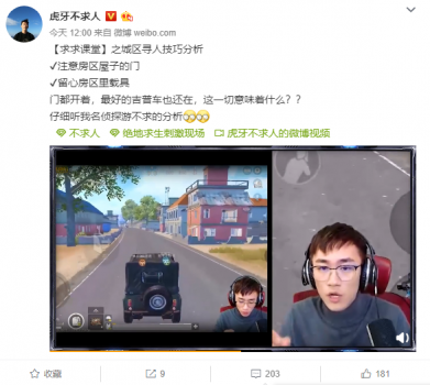 野区大,不好找敌人。但是大的资源点,比如P城,进了城就别放过敌人。不求人传授的城区寻人技巧有两点,第一点是注意房区屋子的门,开过门的地方肯定是敌人搜过的地方,通过观察开着的门和关着的门位置,粗略判断敌人位置。第二点是留心房区里的载具,不求人以P城旁边停着的吉普车举例,一般P城能刷到的是小轿车或者蹦蹦车,而吉普车是P城最好的车,并且里面有油,轮胎也是好的。停在路边没有开走,表示房区里的人还没有走。不求人夺得了敌方的交通工具后,在城里大按喇叭,把敌人给“炸”出来,完成收割。