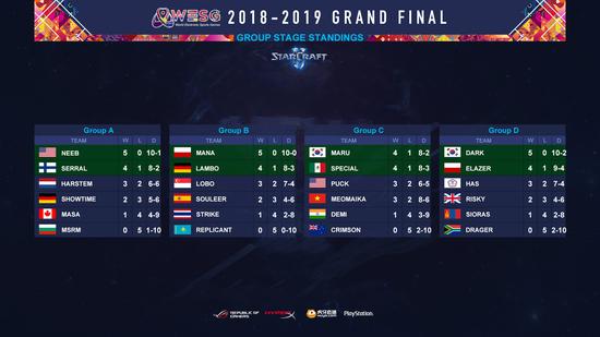 C组中由于存在韩国星际明星选手Maru,所以也是一个备受关注的小组。但他也同样爆冷输给了越南虫王Meomaika,最终未能全胜出线。这也暴露出来他当前状态上的一些问题。不过还好有惊无险,他也凭借四胜和墨西哥选手Special携手出线锁定十六强席位。