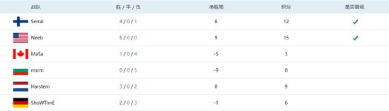 A组中的最大夺冠热门非芬兰选手Serral莫属,但揭幕战中他就爆冷输给了美国选手Neeb,惊出观众们一身冷汗。还好最后Serral迅速找回了状态,用一波四连胜确保了自己顺利出线。而美国选手Neeb也凭借一波五连胜顺利锁定小组头名。