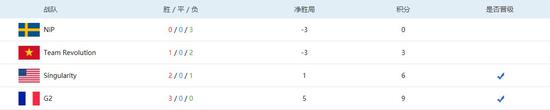 A组本来是一个竞争非常激烈的小组,但在瑞典强队NIP弃权之后,来自法国的G2战队便彻底失去了对手,轻松三战全胜出线。紧随其后的则是来自美国的Singularity战队。