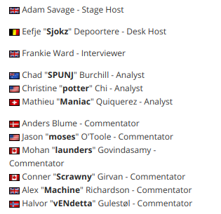 至于解说依旧是大家熟悉的阵容,包括Machine和vENdetta等人。