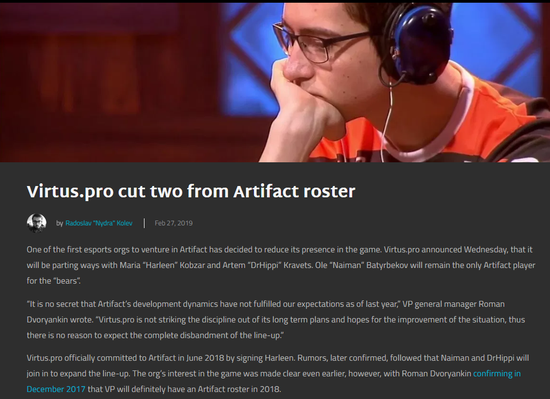 另外根据外媒vpesports的报道,目前VP.Artifact分部只有Naiman一个队员了,Harllen与DrHippi已在上个月底离开。