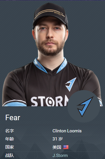 Fear是现役职业选手中年龄最大的了。作为一名31岁的老将,还在职业赛场拼搏的Fear可以说是对这款游戏是真爱了。这个美国老队长来到JS之后JS的实力可以说是突飞猛进,一是因为本来这个队伍没什么脑子,现在来了这个可以说是最老的老将,无论是训练还是比赛实力的提升当然是很有帮助的。而Fear虽然人老但是操作一点没拉下。毕竟是一号位出身的选手,什么土猫小Y自然是随便掌握。