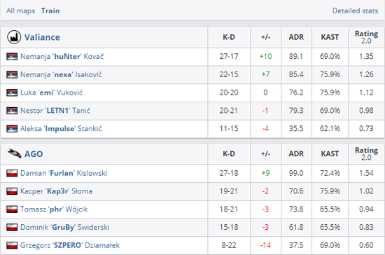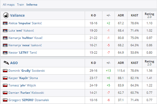 在第一张地图Train上先执进攻的Valiance虽然来世凶狠,但队内配合明显强差人意。虽然在第2局翻盘对手拿到暂时性的优势,可随后的局数中队内枪法和协同失误都非常明显,AGO也抓住机会将比分不断扩大。多个进攻点位被卡死的Valiance上天下地都无门,经济也持续被对手控制打的非常憋屈。就在比分要以巨大差距拉开时,队内手感不错的nexa站了出来凭借一把沙鹰缴来的AWP连打三人将分差抑制,最终AGO仅以9-6的小比分优势领先半场。