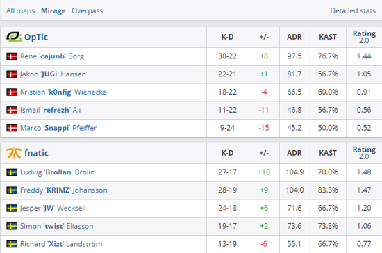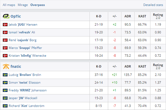 来到图二Overpass后Brollan延续了上一局不错的手感,先做防守的Fnatic游刃有余的守下了OpTic多波进攻,这个年轻人屡次的三杀刷屏也让众人大呼惊艳,最终Fntiac先以10-5的优势领先半场。
