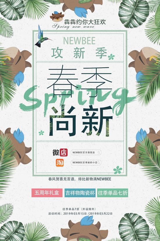Newbee五周年限定礼盒与所有五周年限定新品即日起将登陆Newbee淘宝店铺,从3月15至22日期间购买五周年限定礼盒还将获赠犇犇吉祥物陶瓷杯一只,可爱的小犇犇也来给大家送福利啦!喜欢的小伙伴们千万不要错过了哟!