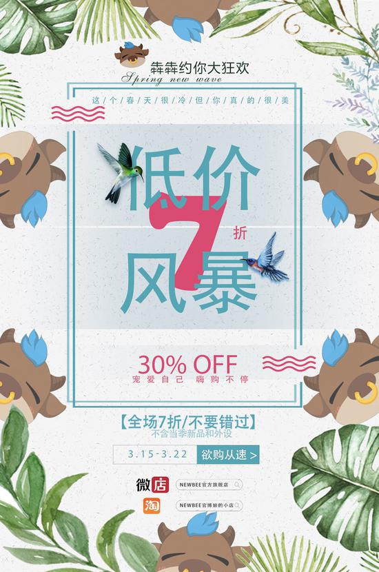 除了店铺上新,Newbee往季优惠促销活动也同步启动啦!即日起至22日,往季单品全部七折,折扣力度甚至超越了双十一、618等购物节。许多单品已经绝版,这次优惠活动可能成为最后的购买机会,快来见证着你我的青春岁月!
