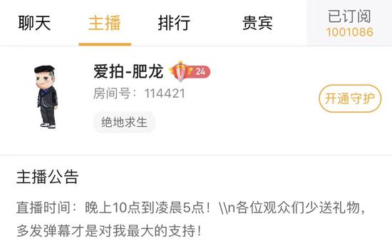 在2018年8月27日,直播间订阅粉丝突破百万