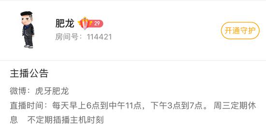 由于长期熬夜身体熬不住,所以肥龙现在一直在调整直播时间,由凌晨12:00-5:00改为上午6:00-11:00,下午3点到7点直播(周三休息),时间虽然变动,但逗比调皮风格依然是主旋律,希望小伙伴们一如既往地支持哦!