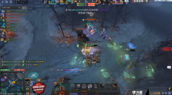 42分钟EG开雾找到落单的末日,老十一冷静勾引,等队友赶到依靠完美的技能衔接,打了EG一个人团灭,血赚!无人阵亡的KG破掉对方两路高地,经济领先来到了12K。