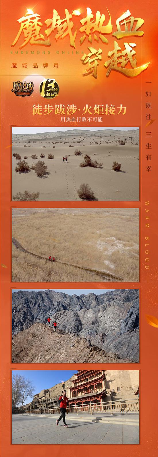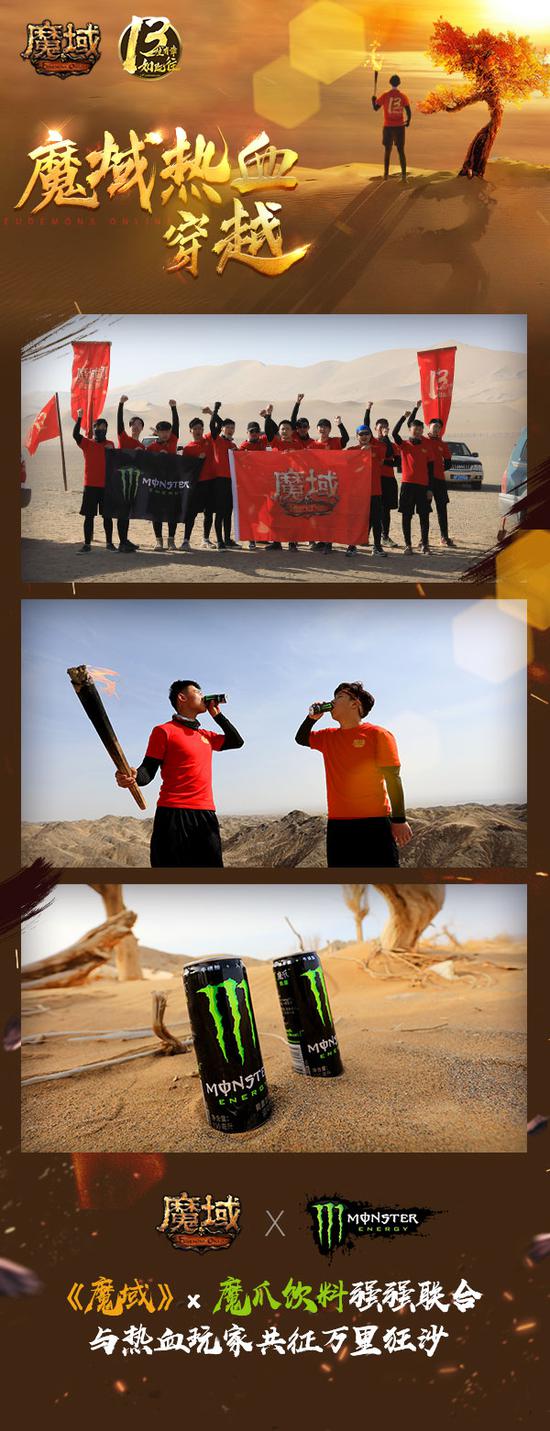 导语:“漫天黄沙掠过,走遍每个角落,行走在无尽的苍茫星河~”正如歌曲中唱的那份豪情,2019年3月,《魔域》联合畅销功能饮料Monster energy魔爪饮料演绎现实版“沙漠骆驼”献礼十三周年品牌月。从大漠敦煌出发,满怀热血与激情穿越沙漠敬真我,一路点燃13座烽火,每一个黄沙脚印背后,都有一个热血的灵魂。沙场征程,荣耀而归,让我们一起倾听《魔域》玩家讲诉“沙漠穿越”背后的热血故事。