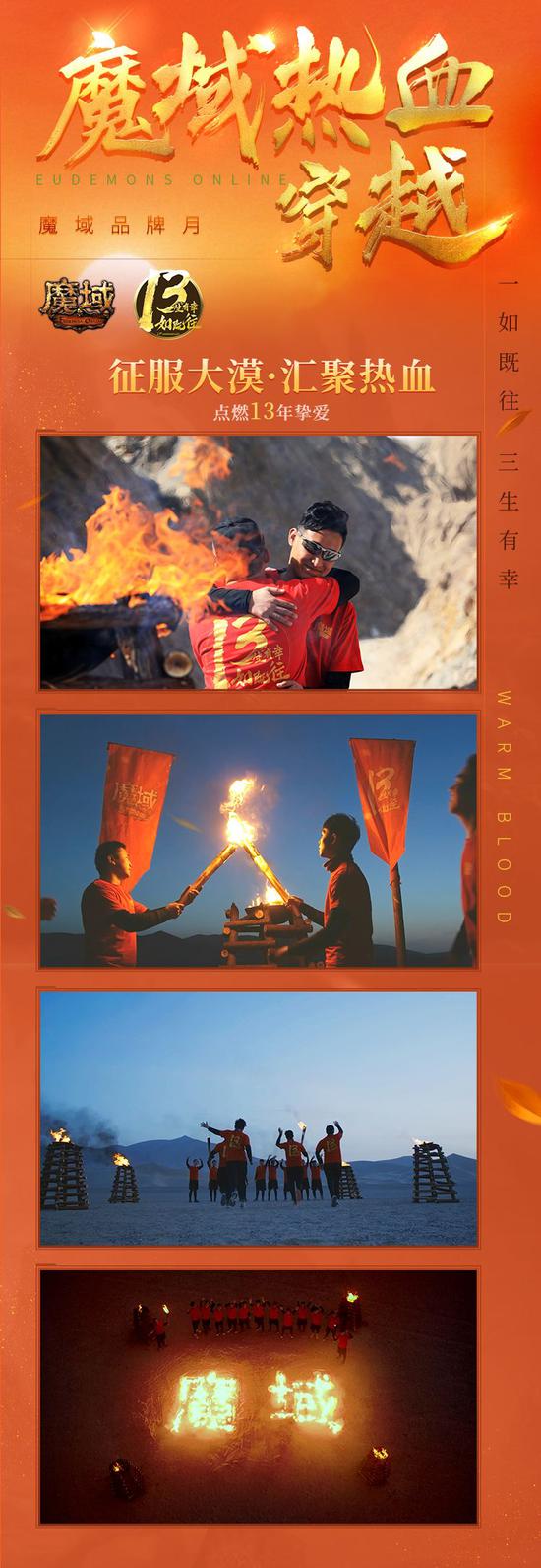 正如玩家在纪录片中所感慨的一样,这次壮举就如昔日于《魔域》初见,充满未知的好奇和希望。如十三年一如既往度过的《魔域》日夜,在热血PK,大型团战,集体任务中相互认可,并肩作战。线上相逢十三载,线下薪火传大漠。从线上相互扶持到线下相互鼓励,从线上惺惺相惜到线下一同征服自然,魔域热血兄弟用同样的热血激情化作沙漠驼铃,响亮大漠。
