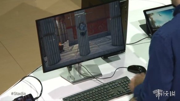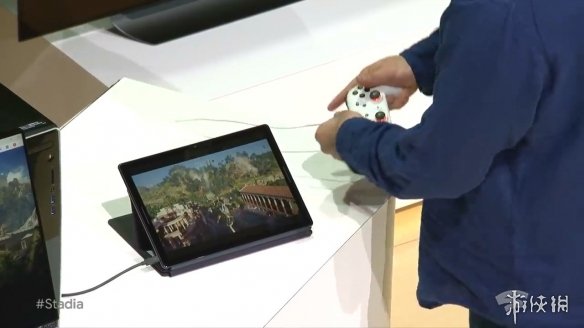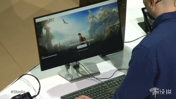 发布会上官方用《刺客信条:奥德赛》进行了演示,在PC、平板、电视、手机之间可以随意切换,游戏进度承接之前,非常方便,从演示的画面来看几乎也没什么延迟。另外,玩家之间的存档也可以共享。