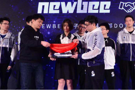 2月28日,Newbee电子竞技俱乐部五周年大型庆典的现场,Newbee与体育品牌李宁正式达成战略合作,李宁成为Newbee的官方赞助商,双方将联合出品多款合作定制产品。在庆典中,Newbee DOTA2分部的选手们身着“李宁×Newbee”合作款队服登台亮相;授鞋环节,Newbee DOTA2分部主队教练、同时也是TI4的世界冠军王蛟(ID:Banana)从李宁公司市场整合营销总监杨光先生手中接过合作款定制鞋款,宣布双方开启合作。