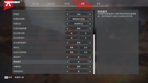 以上是使用1070显卡(CPU I7 7700K,16G内存)在游戏内(144hz显示器下)进行的设置,可以看到左上角的帧数在120-130之间,所以如果把纹理或者模型细节的选项再低一点,基本就可以在140帧附近稳定。