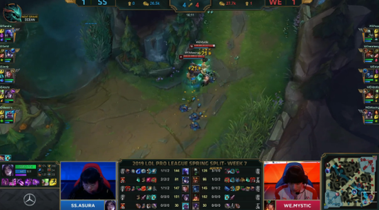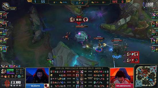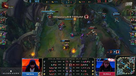 19分钟,WE先手开团击杀了瑞兹,SS随后在中路以少打多反打,SS先击杀了轮子妈,但是冰女的伤害太高了,直接击杀了SS的三人,仅剩猪妹一人落荒而逃。