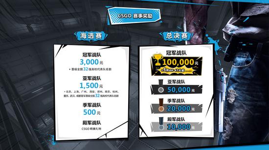 本届完美世界全国高校联赛(春季赛)的总奖金池提升至61.5万元,高校赛全国总冠军奖金依旧高达10万元。另外,CS:GO全国总冠军战队还将获得5件AK-47火蛇,DOTA2全国总冠军战队则将获得5张TI9现场观赛门票!