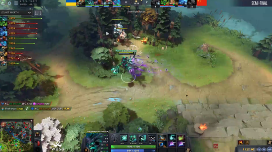 这一局KG和乌克兰队在对线期打得互有来往,并没有哪一方优势较大。甚至在12分钟KG三人推乌克兰下路高地时,因为没带真眼,被乌克兰打出了小强抽蓝+敌法大招的combo,送上了三个人头,将自己1K经济的微小领先送了出去。