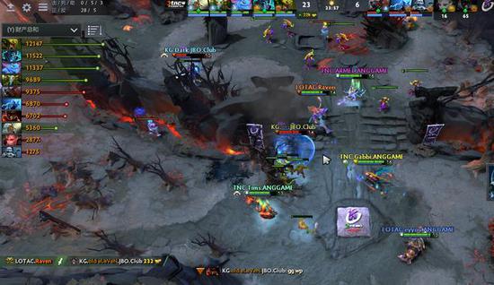 21分钟,TNC蝙蝠骑士带狗开雾,飞鞋飞到下路轻松抓掉old chicken的幻影刺客。随后在23分钟,TNC抱团进攻肉山,KG五人开雾来抓,但夜晚时间已过,KG无奈选择收兵。