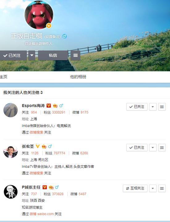这个名为“正版自走棋”的微博认证为“自走棋手游制作人”,与B叔BBC、海涛互相关注: