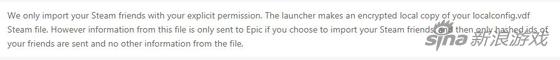 Daniel Vogel还称,EpicGames只会在玩家明确许可的情况下导入你的Steam好友。启动程序对steam文件进行加密。当然如果您选择导入Steam好友,则此文件中的信息是会发送到Epic Games,不过也仅仅发送好友的ID,而不会发送其他的信息。不过他未对云存档的文件做出解释。