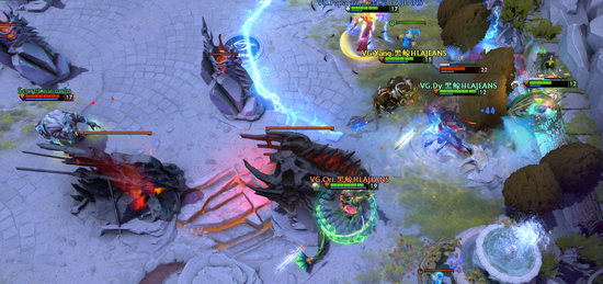 如果我是VG的选手,第一局比赛打完后肯定是一肚子的恼火——被Zai的VS用移形换位戏耍,这样的感觉比被虐泉好不到哪里去。于是到了第二局,在经济落后巨大的情况下,VG展现出了前所未有的坚决——不对,这里说“前所未有”可能不太恰当,因为我们也在KG打液体的第二局见识过这股勇气。前期,秘密在四打五的情况下于12分钟取得了四千块的经济领先。随后,他们更是在20分钟左右将优势扩大到了七千块。然而,在拿下一代肉山后,就算经济仍然落后,Ori还是带领队友打上了秘密的下路高地。这波高地团,Ori的美杜莎完全没有撤退的意思。就像液体无法用熊德带线骗KG回家一样,VG也不会上秘密的当!不管敌法怎么带,不管熊德怎么带,Ori就是要打。26分钟,VG第一次上高;28分钟,VG第二次上高。这是第一次,中国战队找到了对抗秘密的方法。38分钟,Nisha更新的那把金箍棒也无法拯救秘密。一往无前,决不后退,VG将大比分改写为一比一。