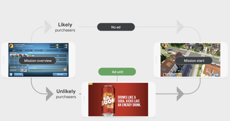 获取并留住用户非常重要,但是只有留存并不代表就能创造收益。谷歌的内部数据显示,平均而言,仅有不到4%的用户会在应用内消费。因此,提升整体收入的另一个必要方式就是通过广告。然而,有一些开发者担心广告会影响付费玩家的游戏体验,导致最终影响应用内消费的收入。试想一下,如果能够仅针对不在应用中付费的玩家展示广告呢?