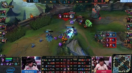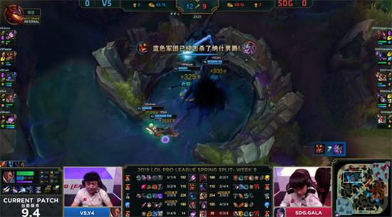 第11分钟,SDG5人强越V5上路一血塔,V5在剑魔未到场情况下4打5,辛德拉发挥出色拿下三杀,最终SDG被团灭,V5打出2换5。