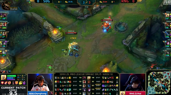 前中期的比赛SDG中野一直在地图找出机会,等到卡莎装备出不成型之后,双方在大龙buff处打了很多波团战。虽然是SDG最终能够笑到最后,赢下了一些小优势。几波过后RNG渐渐输掉了主动权。