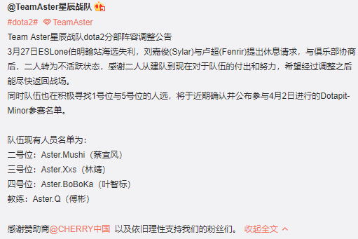 回顾Team Aster成立至今的大半年,建队伊始,玩家们就对其报以期待。毕竟队内有TI8“背靠世界树”的赛老师,老将芬队以及中国DOTA新生代的代表人物Xxs和Boboka。赛季之初Aster打的一些比赛也展示出了不错的状态,小比赛砍瓜切菜不说,在吉隆坡Major的预选赛上也战胜了VG、TS和RNG这些实力不错的队伍。尽管输给了LGD,但对于一支新组建的队伍来说,输给TI8的亚军也不丢人。