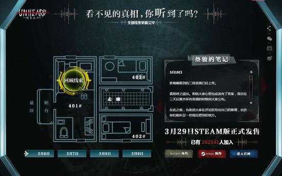 3月29日,由腾讯NEXT Studios和Bilibili联手推出的以声音为线索的推理解谜游戏《疑案追声》。在游戏发售前,他们还打造了别开生面的游戏预约,阶段性地放出声音素材,挠得玩家心里直痒痒,热火朝天地讨论案情真相。