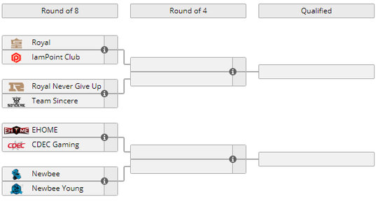 在昨晚深渊联赛Minor海选结束之后,中国区预选赛的对阵名单也已出炉。分到上半区的是RNG、Royal、IP和Sincere战队,而分到下半区的是EHOME、CDEC、Newbee和Newbee.Y战队。