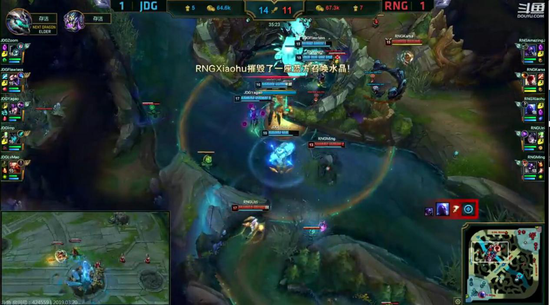 最后的Uzi因为一波走位失误被JD抓到,此后JD再次开大龙,但是RNG中上直接TP去偷家。已经开了大龙的JD进退两难,只能硬着头皮和RNG剩余三人在龙坑里打架,不过显然最终RNG偷家赢下比赛。