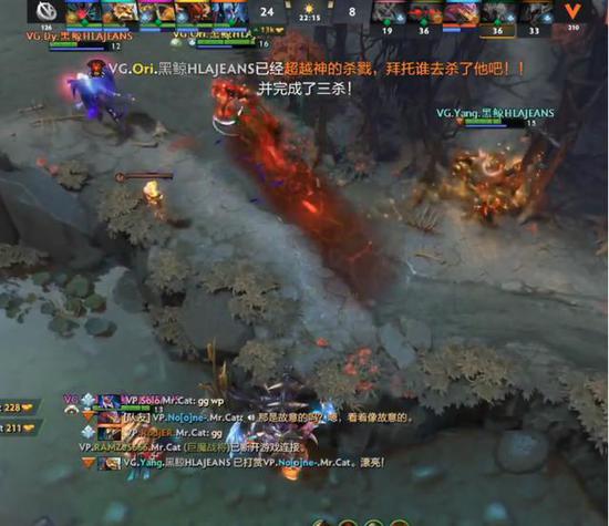 22分钟VP中路开雾一战,巨魔冲入人群白给后滚滚直接临阵脱逃,在己方三兄弟阵亡后VP打出GG,VG先拿赛点。