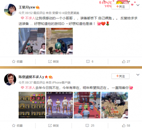 在“一周年”感言中,不求人如往常一样,将一切都归功于粉丝的支持,让人倍感暖心。而话说值此一周年之际,粉丝们也是纷纷大胆表白。与不求人“互诉衷肠”。