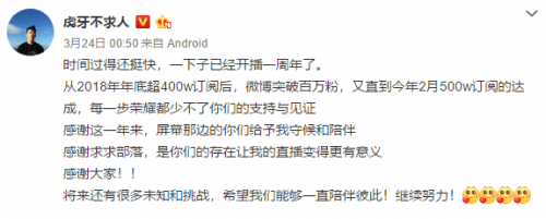 不求人发布一周年感言 与粉丝“互诉衷肠”