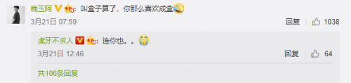 不求人“认真”吃醋后,网友也开始认真为猫起名字。其中就有DKG的团宠晚玉,他给猫起的名字叫“盒子”,还调侃不求人喜欢落地成盒。不求人随后回复他:“连你也……”还配了一个哭泣的表情。连自己弟弟都沦陷在猫咪的石榴裙下,一时间不求人百感交集。