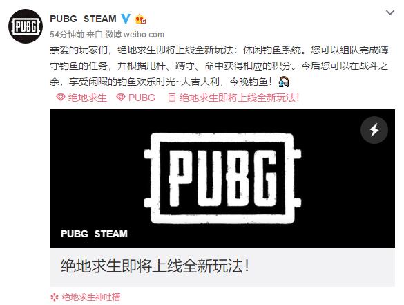 PUBG官博宣布,绝地求生全新玩法:休闲钓鱼系统即将上线。